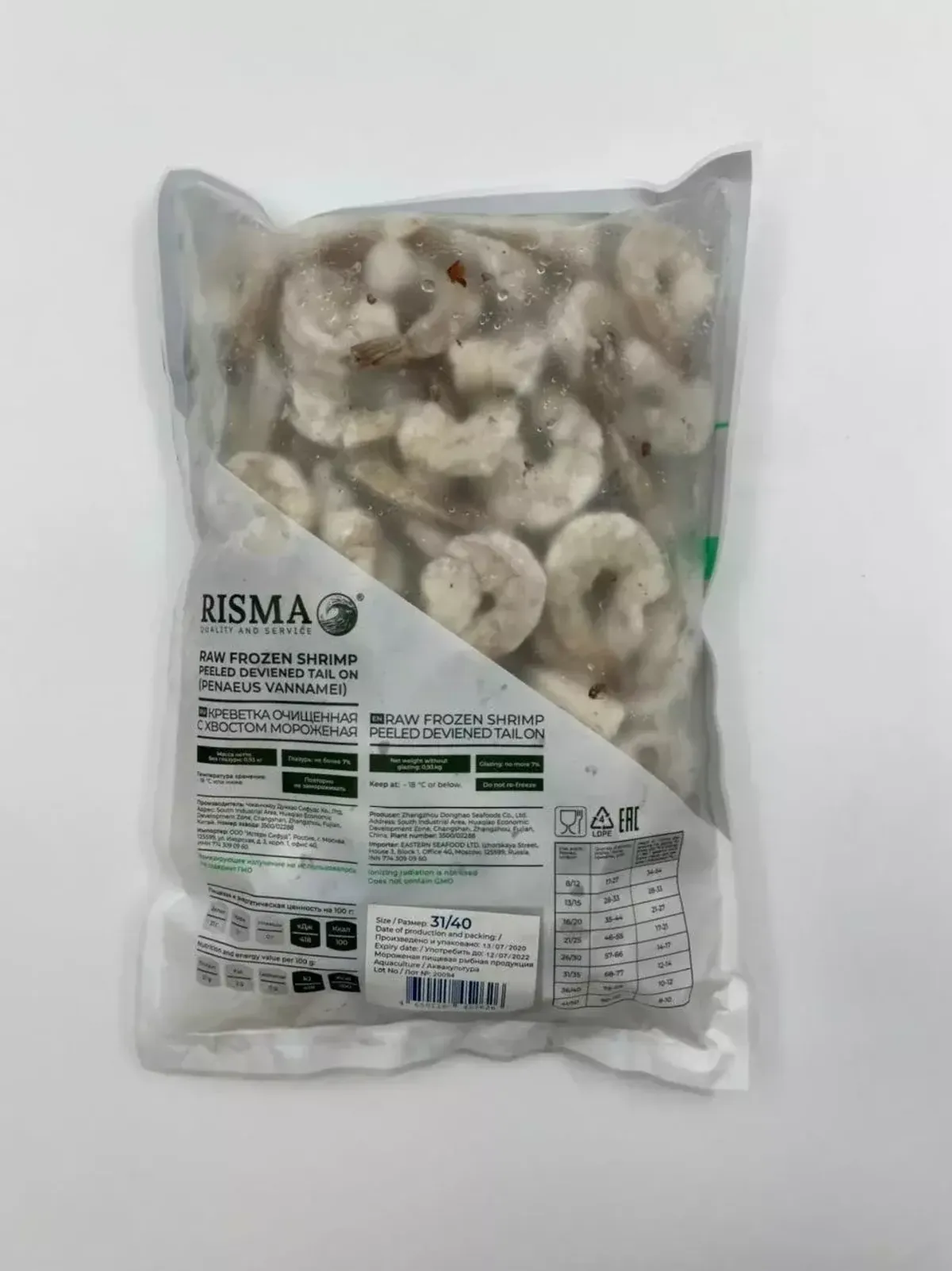 Risma - премиальный бренд морепродуктов. Большое разнообразие креветок, мидий, морского коктейля и другой продукции для ресторанов и домашнего приготовления. Качественные креветки, соответствующие своему размеру, с минимальным количеством глазури. Район вылова - индийский океан.