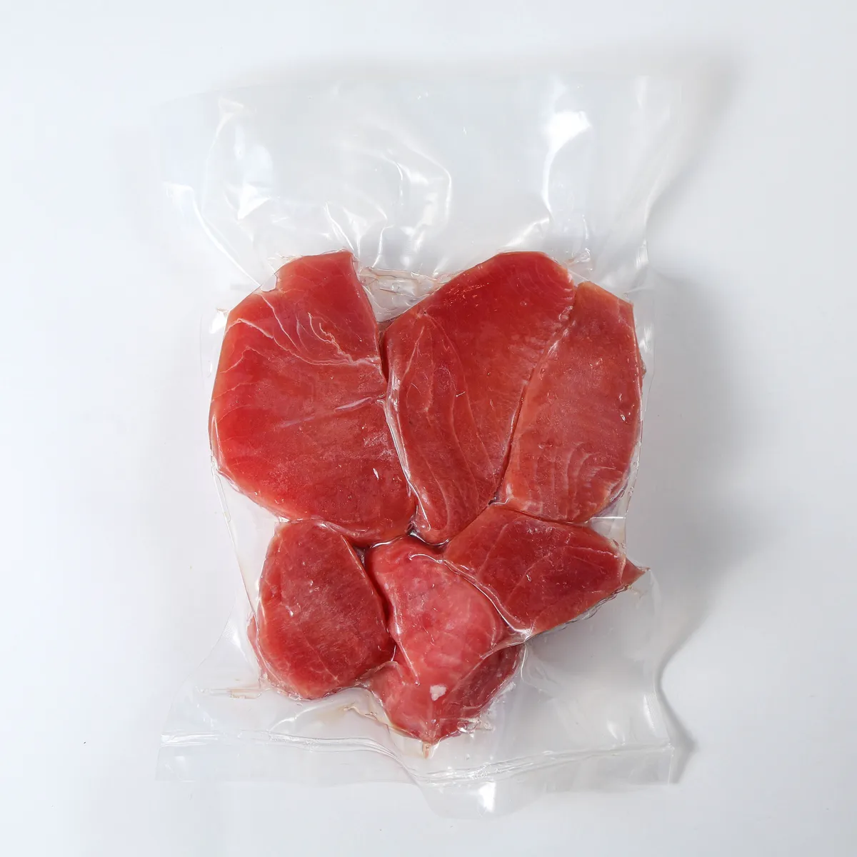 Желтоперый тунец относится к морским рыбам семейства Скумбрий. Ареалом его обитания считается Индийский, Тихий и Атлантический океаны. Название рыба получила благодаря наличию желтых плавников, а также золотисто-голубой полосе, которая проходит по боковым сторонам. Рыба крупная, поэтому чаще всего ее продают в виде стейков (медальоны без костей).